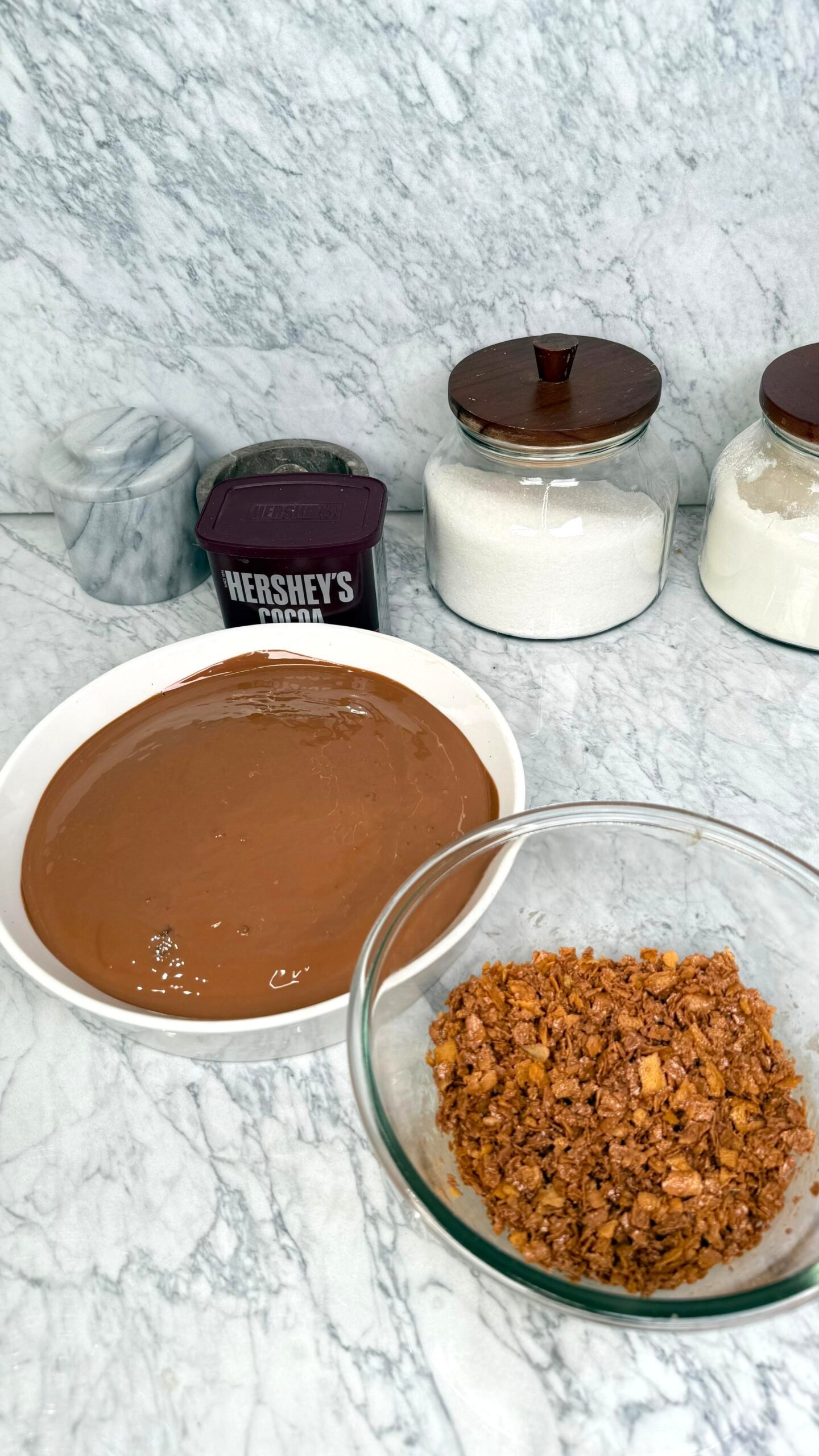 - نخلط ربع كوب من الشوكولاتة المذابة مع كوب من الفيوتين