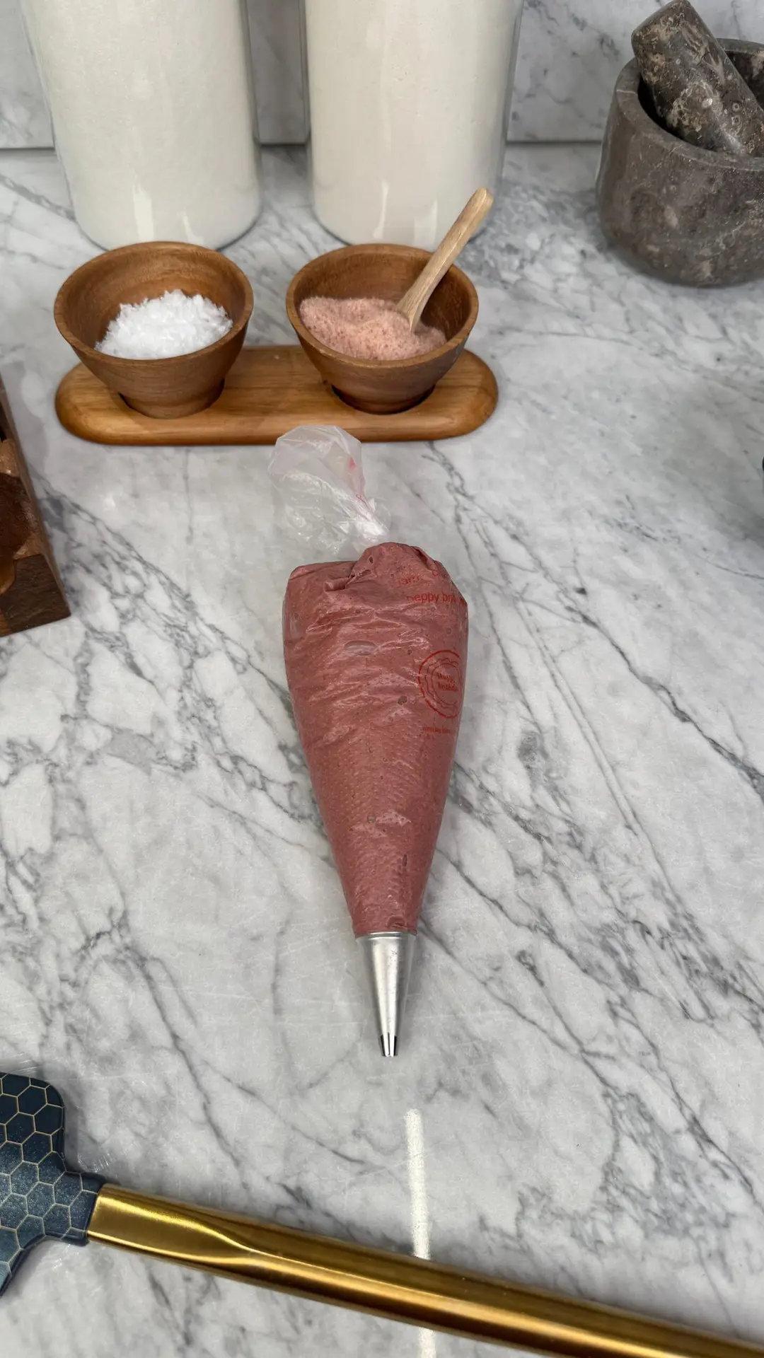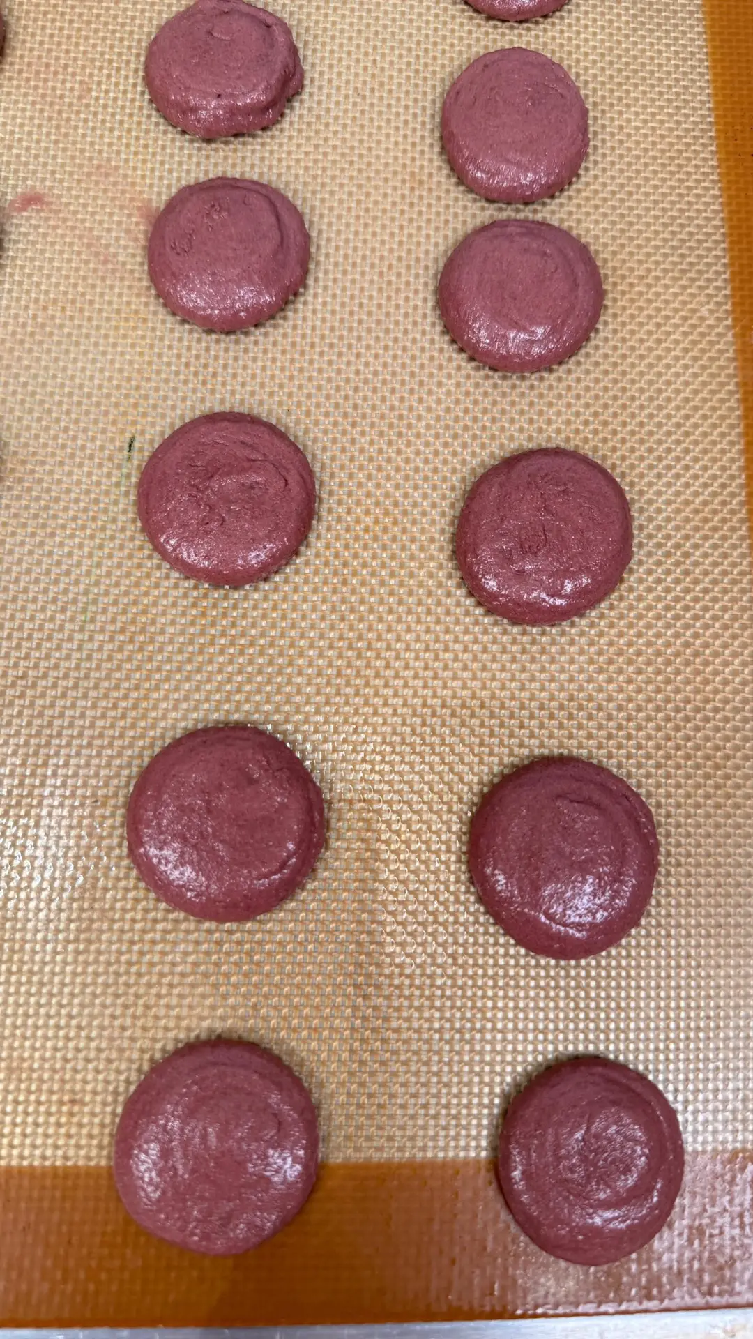 - يُوزّع الخليط على صينية مبطّنة بورق الزبدة باستخدام كيس حلويات ، وتُترك لتجف في درجة الغرفة لمدة نصف ساعة.
