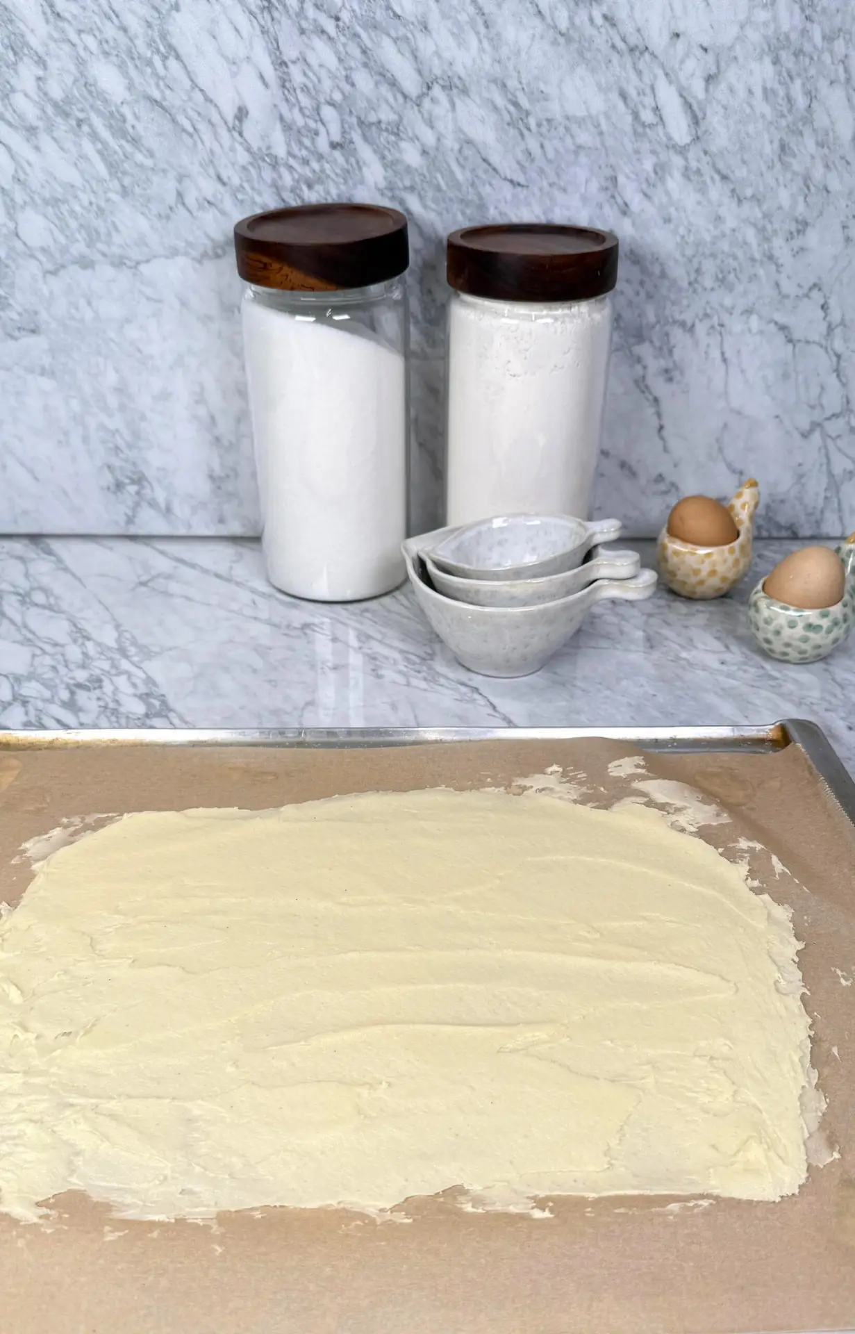 يُفرد الخليط على ورق زبدة على شكل 4 مربعات رقيقة.