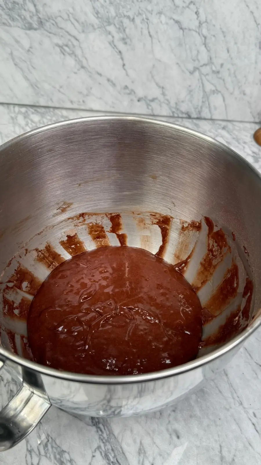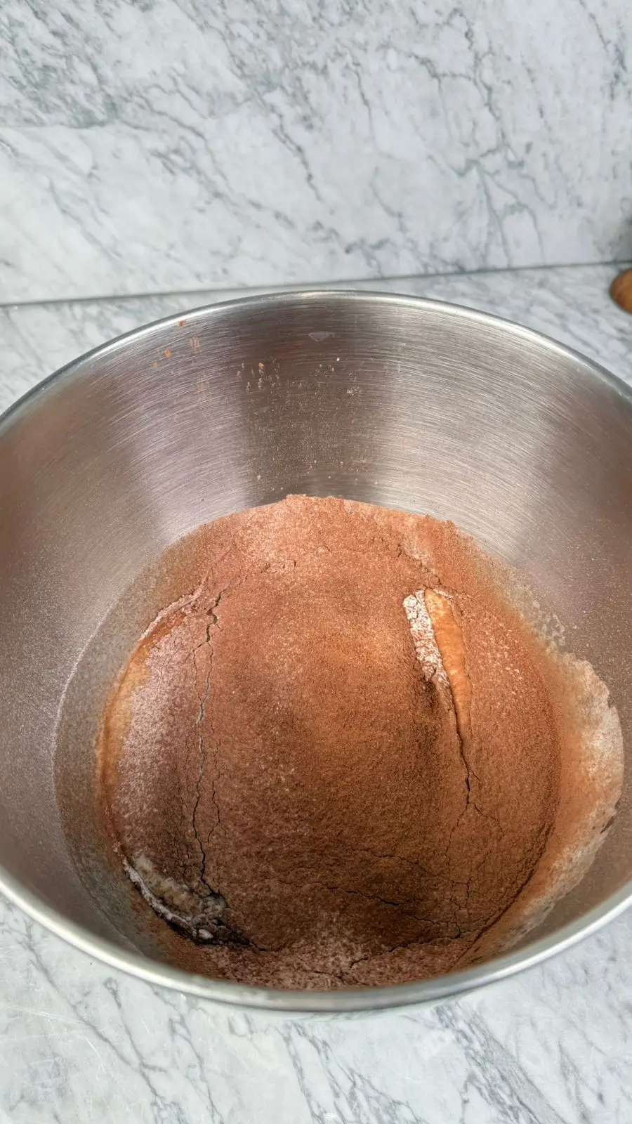 • نضيف الطحين، الشوكولاتة البودرة، والباكينغ باودر، ونخلط المكونات دون مبالغة في الخلط.