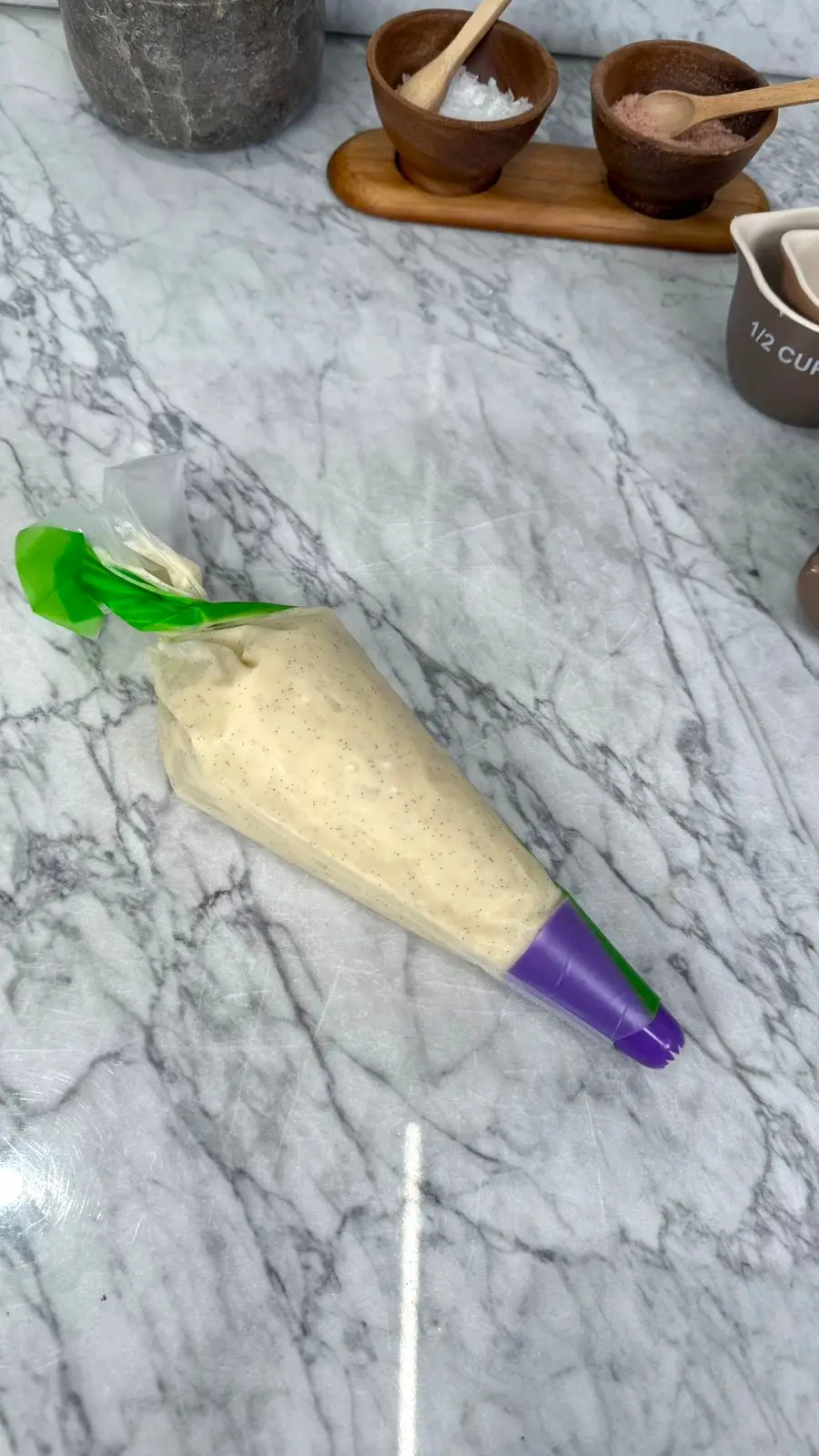 ننقل العجينة مباشرة إلى كيس الحلويات.
