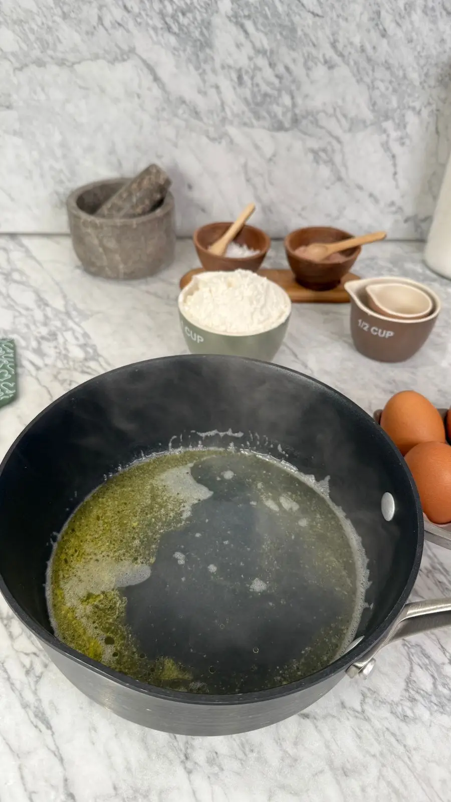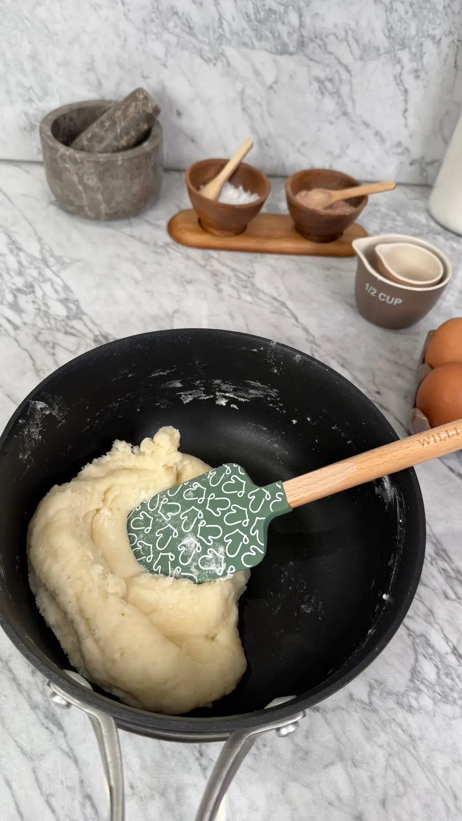 نرفع العجينة عن النار ونتركها حتى تبرد تماما.